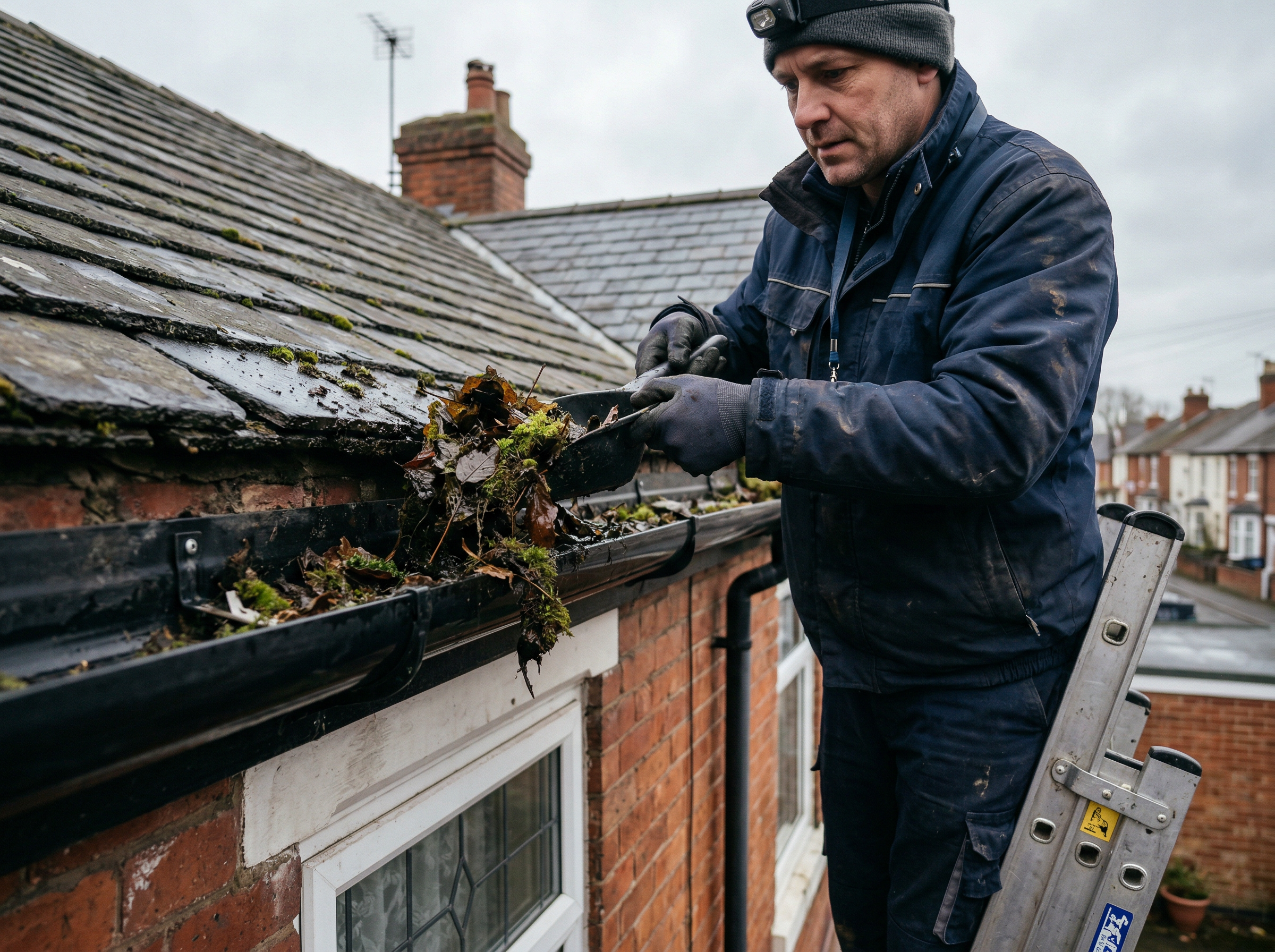 Our gutter cleaning service in Coventry removes all debris from your gutters and downpipes, ensuring rainwater drains freely through your entire gutter system. We use professional equipment to clear even heavily blocked gutters safely and efficiently — no mess left behind.