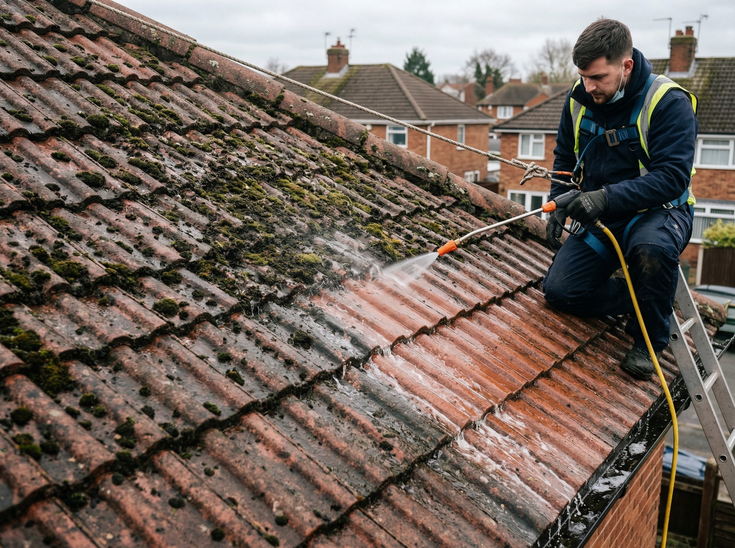 Our roof cleaning service in Coventry uses professional soft wash and low-pressure techniques specifically designed for roof tiles. Unlike high-pressure washing, our method removes moss and algae at the root without dislodging or cracking tiles. We treat the growth biologically so it doesn't simply return within a few months.